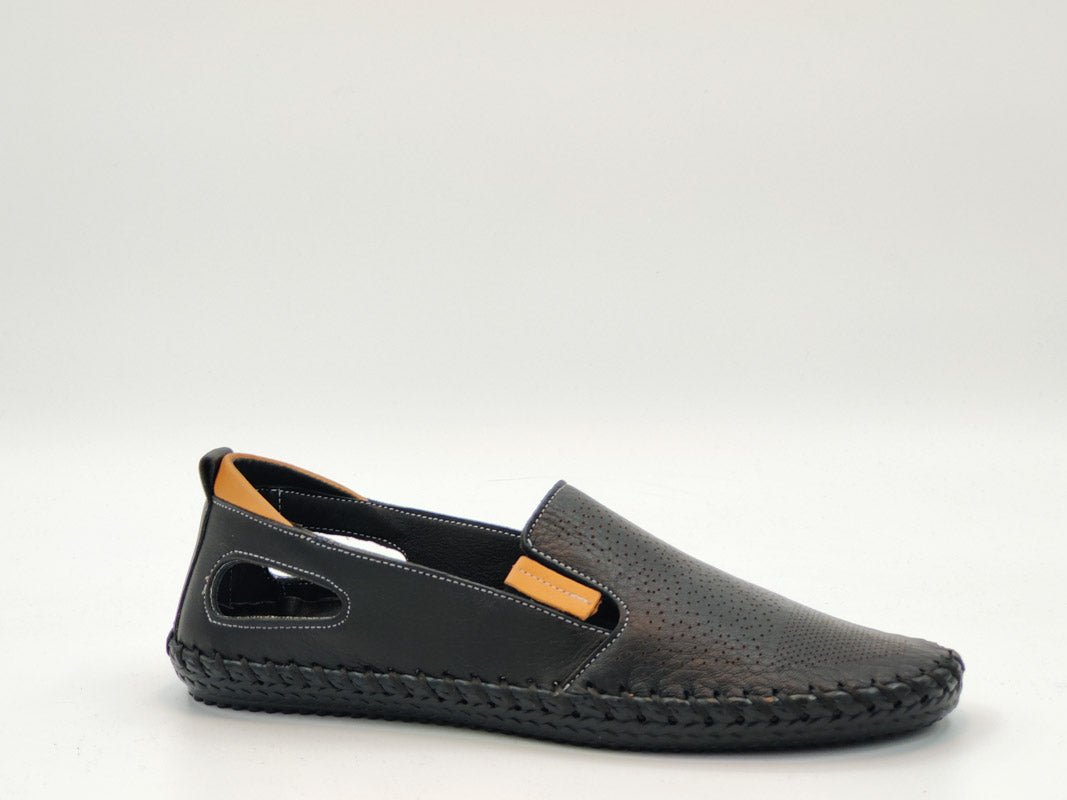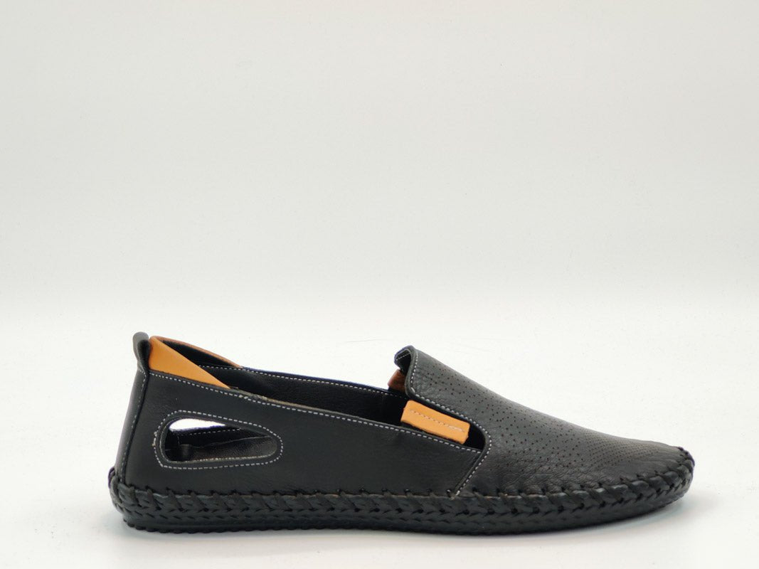 - material fata: piele naturala de vitel, de inalta calitate, tipul varfului: rotund, cu model perforat, tip inchidere: 2 elastice;