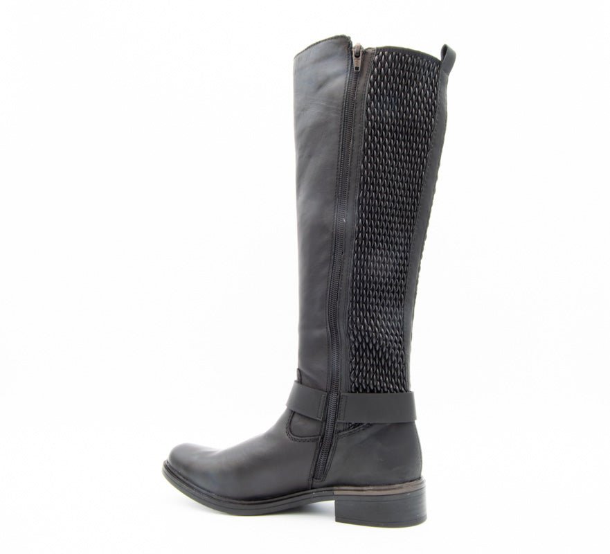 - Material Fata: piele naturala, piele ecologica, de inalta calitate, tipul varfului: rotund, tip inchidere: fermoar, model potrivit pentru picioarele ( pulpele) late datorita textiului sub forma de stretch.