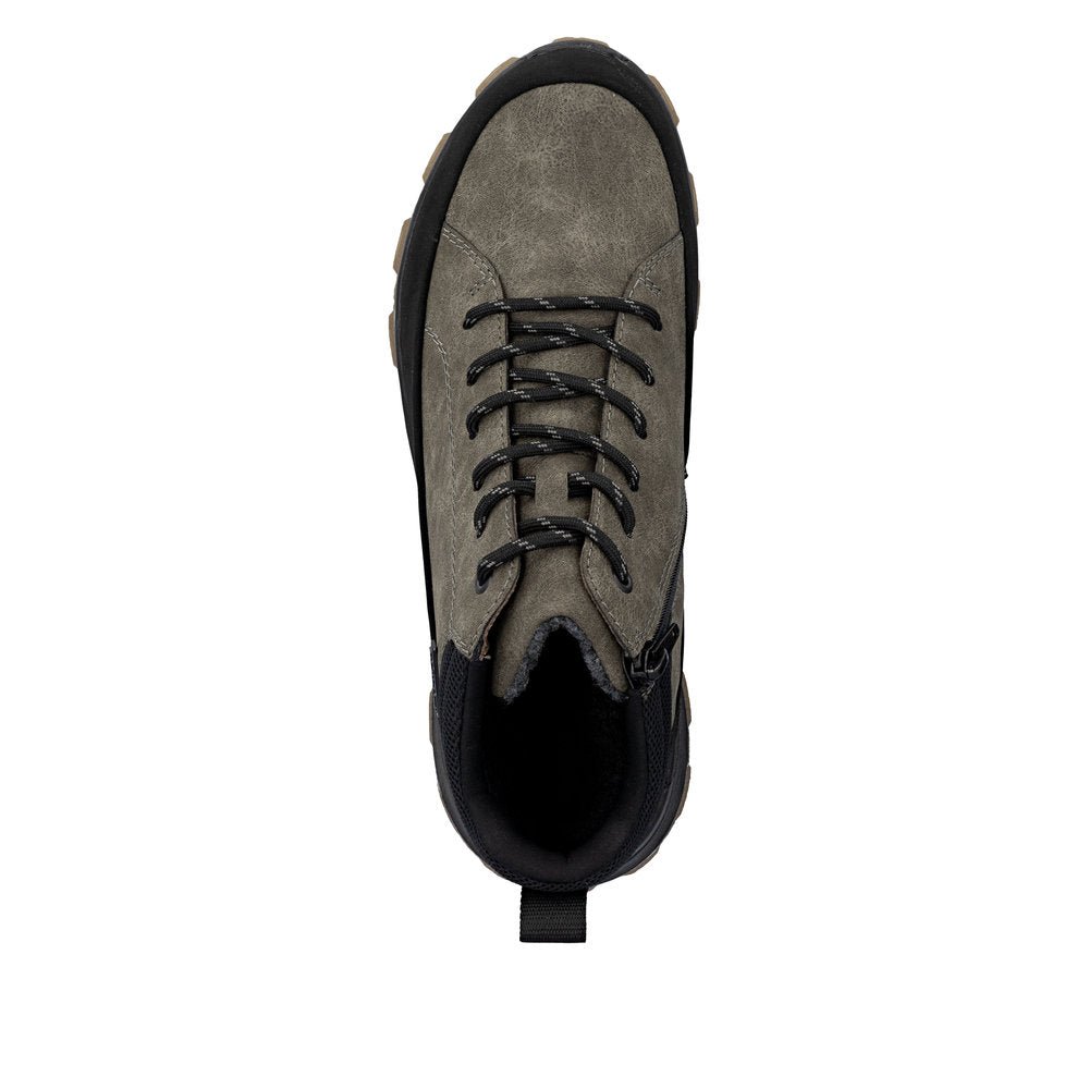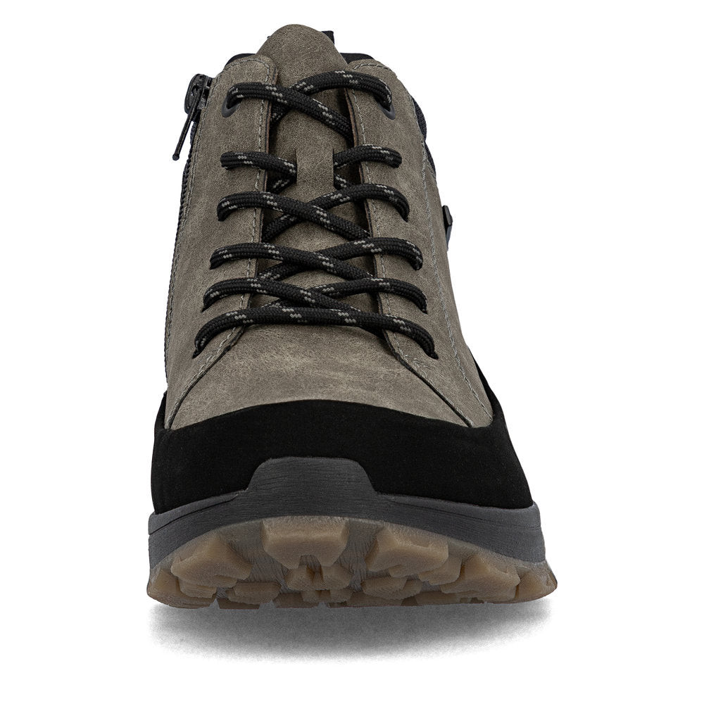 Ghetele Rieker RIEK 35508 sunt dotate cu un sistem de închidere practic, care include șireturi și fermoar. Această combinație nu doar că facilitează încălțarea, dar oferă și un aspect modern și dinamic. Designul deosebit al ghetei este accentuat de detalii subtile, care o fac să iasă în evidență, fără a fi prea ostentativă.