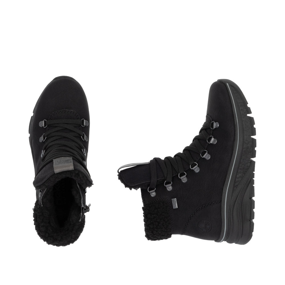 Ghetele sunt echipate cu tehnologia RiekerTex, care le face rezistente la apă, păstrându-ți picioarele uscate chiar și în condiții meteorologice nefavorabile. Această caracteristică este esențială pentru femeile active, care nu doresc să fie limitate de vreme. În plus, designul cu siret și fermoar nu doar că adaugă un element de stil, dar facilitează și încălțarea și descălțarea rapidă.