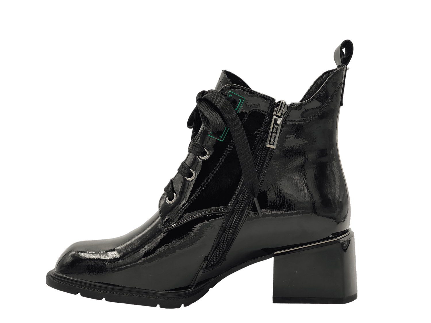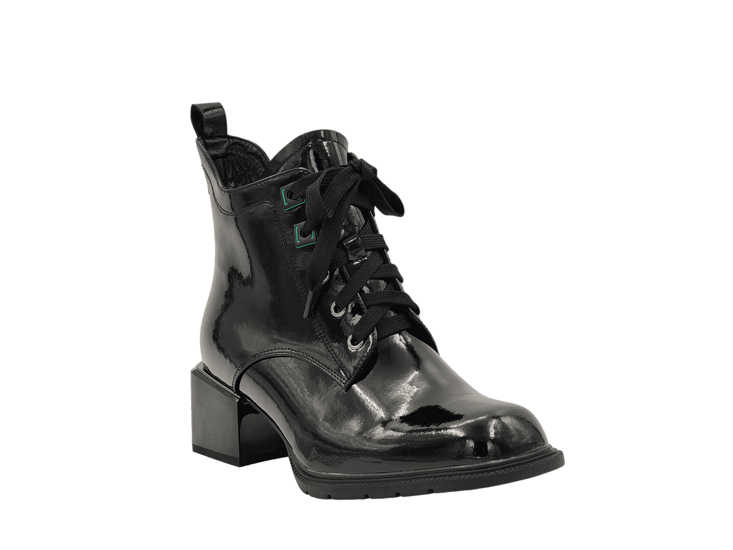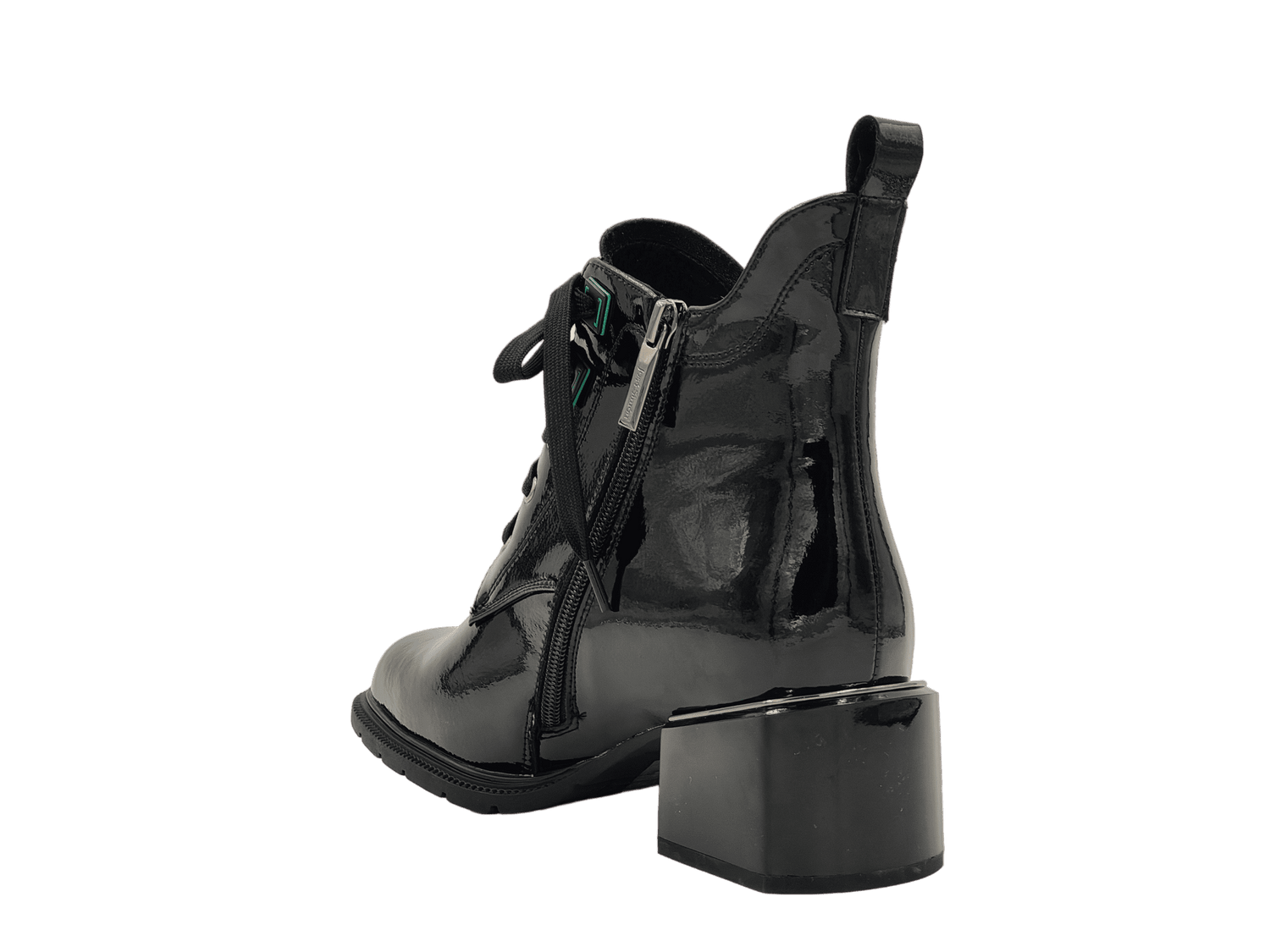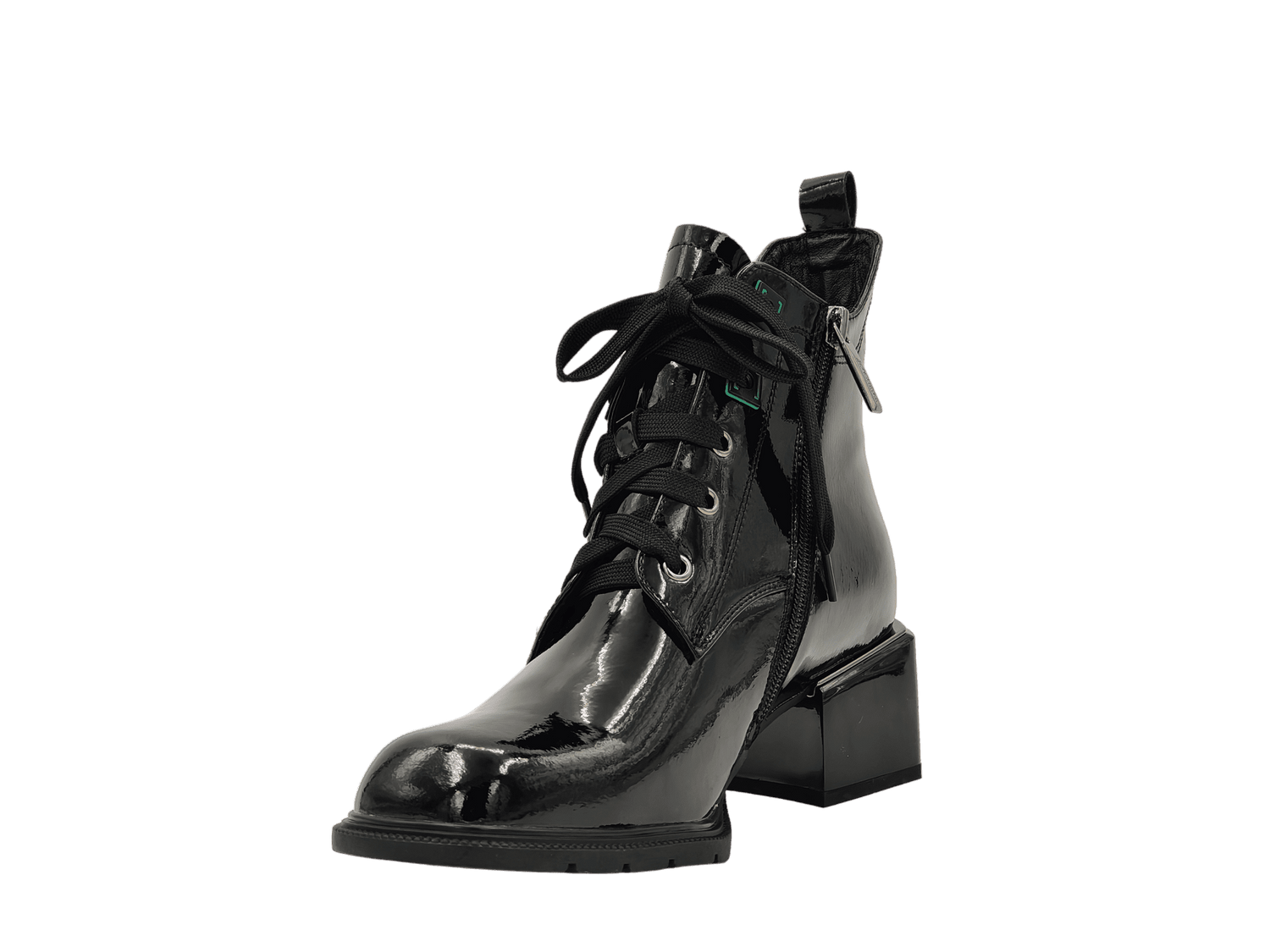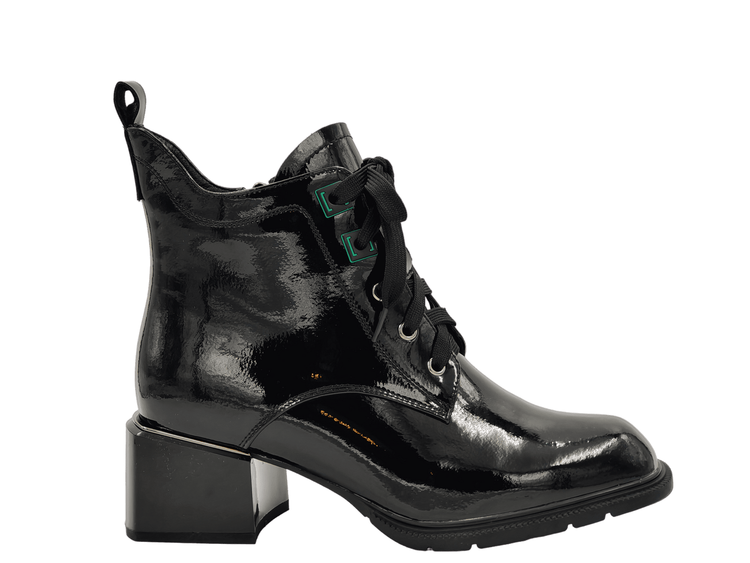 - Material Fata: piele naturala lacuita, design deosebit, tipul varfului: patrat, tip inchidere: siret si fermoar;