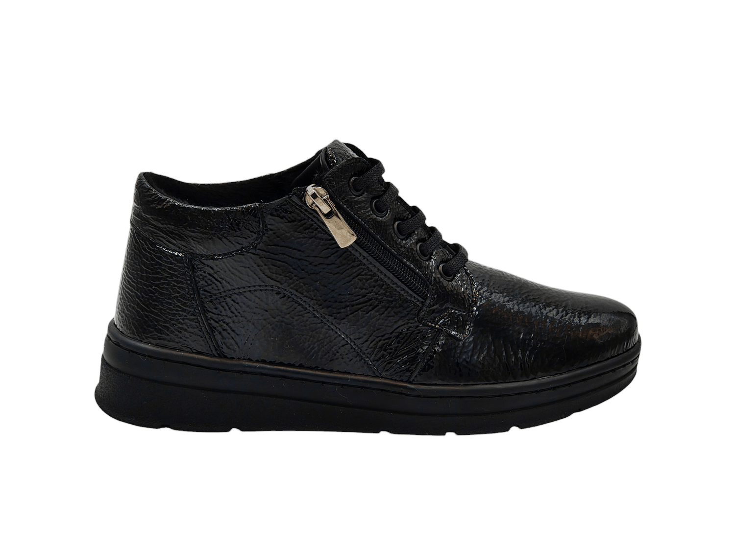 Aceste ghete sunt echipate cu șireturi și un fermoar mobil pe partea exterioară, facilitând încălțarea și descălțarea rapidă. Fermoarul adaugă un plus de funcționalitate și stil, permițând ajustarea ghetei pentru o potrivire perfectă. Varful rotund al ghetelor contribuie la confortul general, oferind suficient spațiu pentru degete și prevenind disconfortul în timpul purtării prelungite.