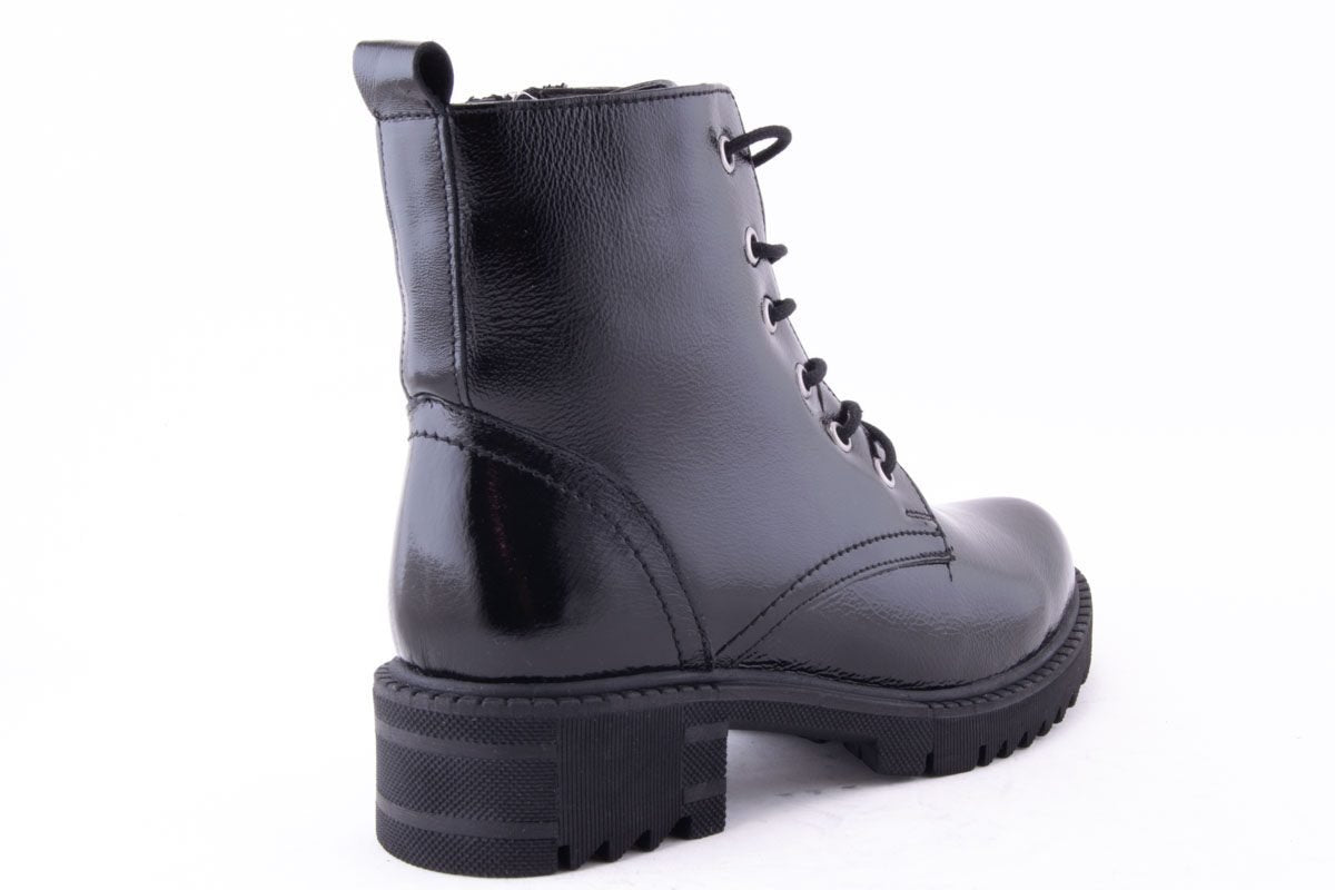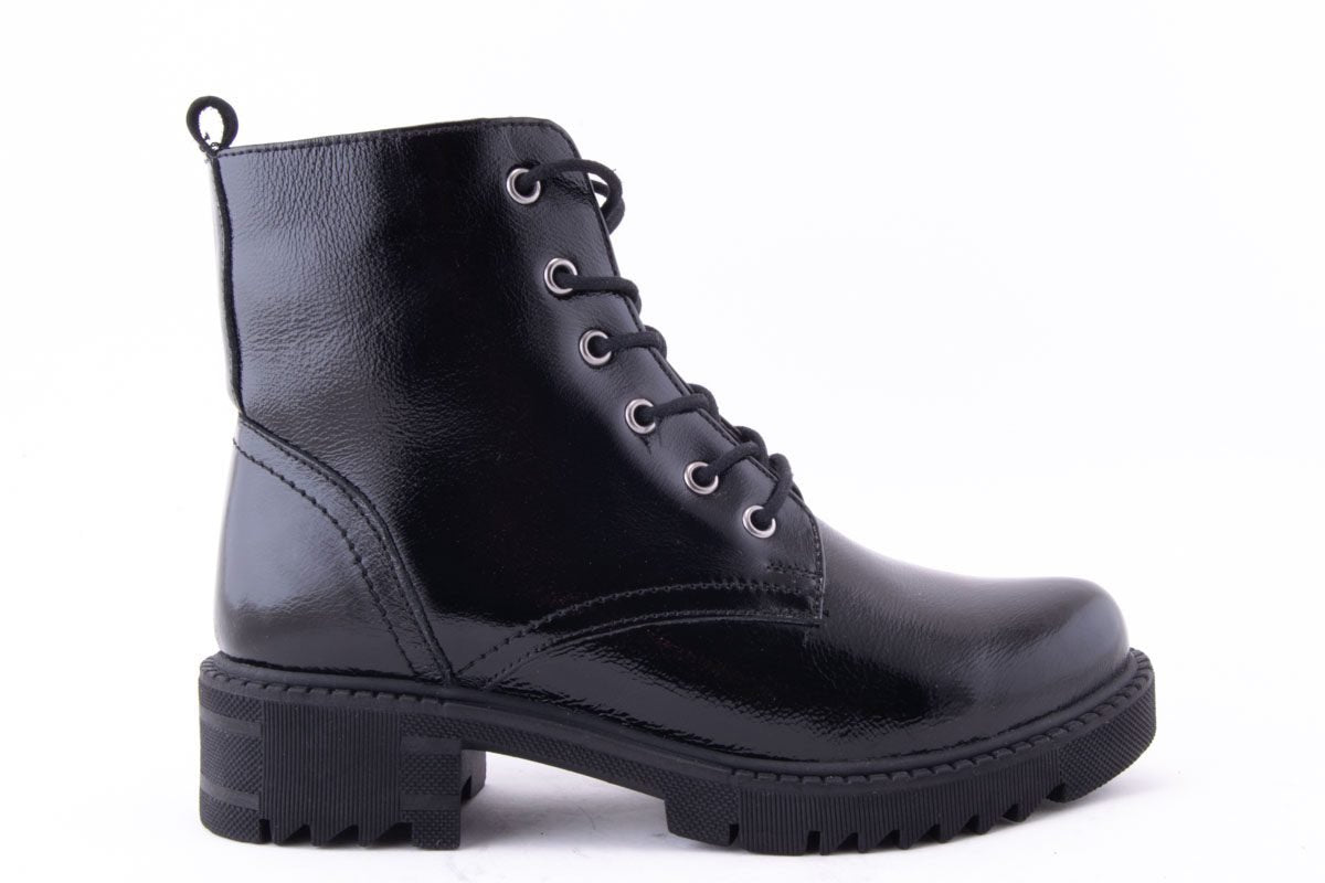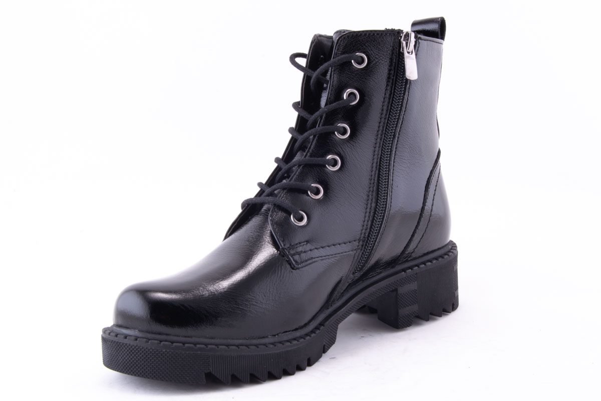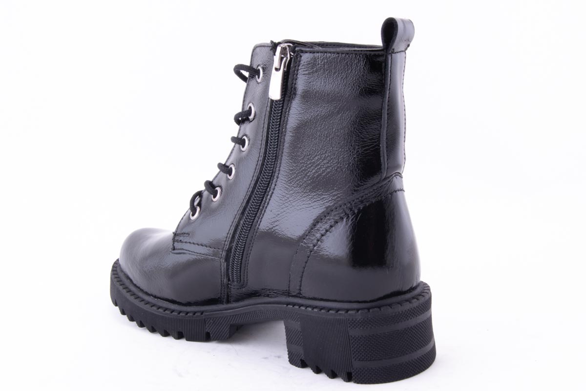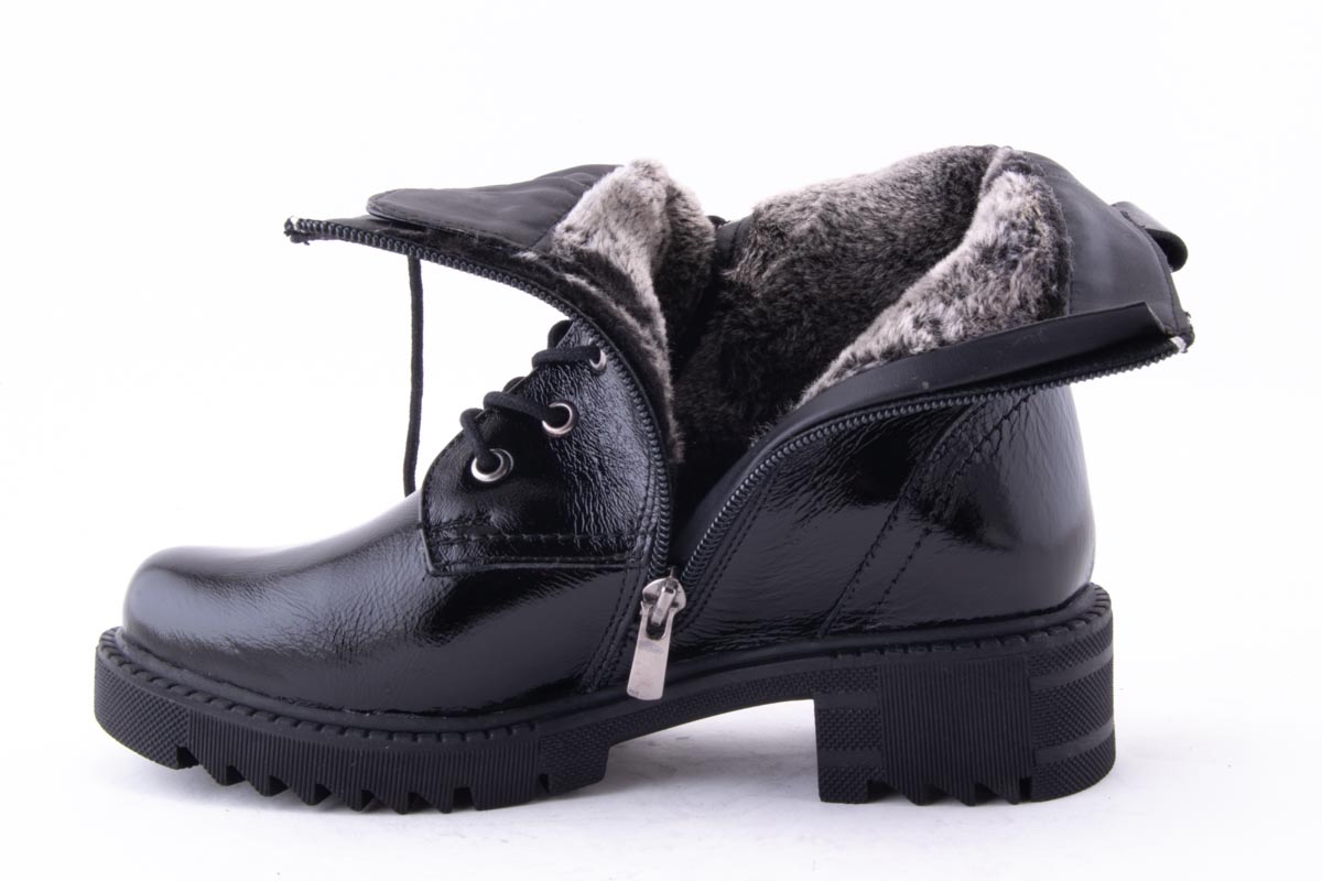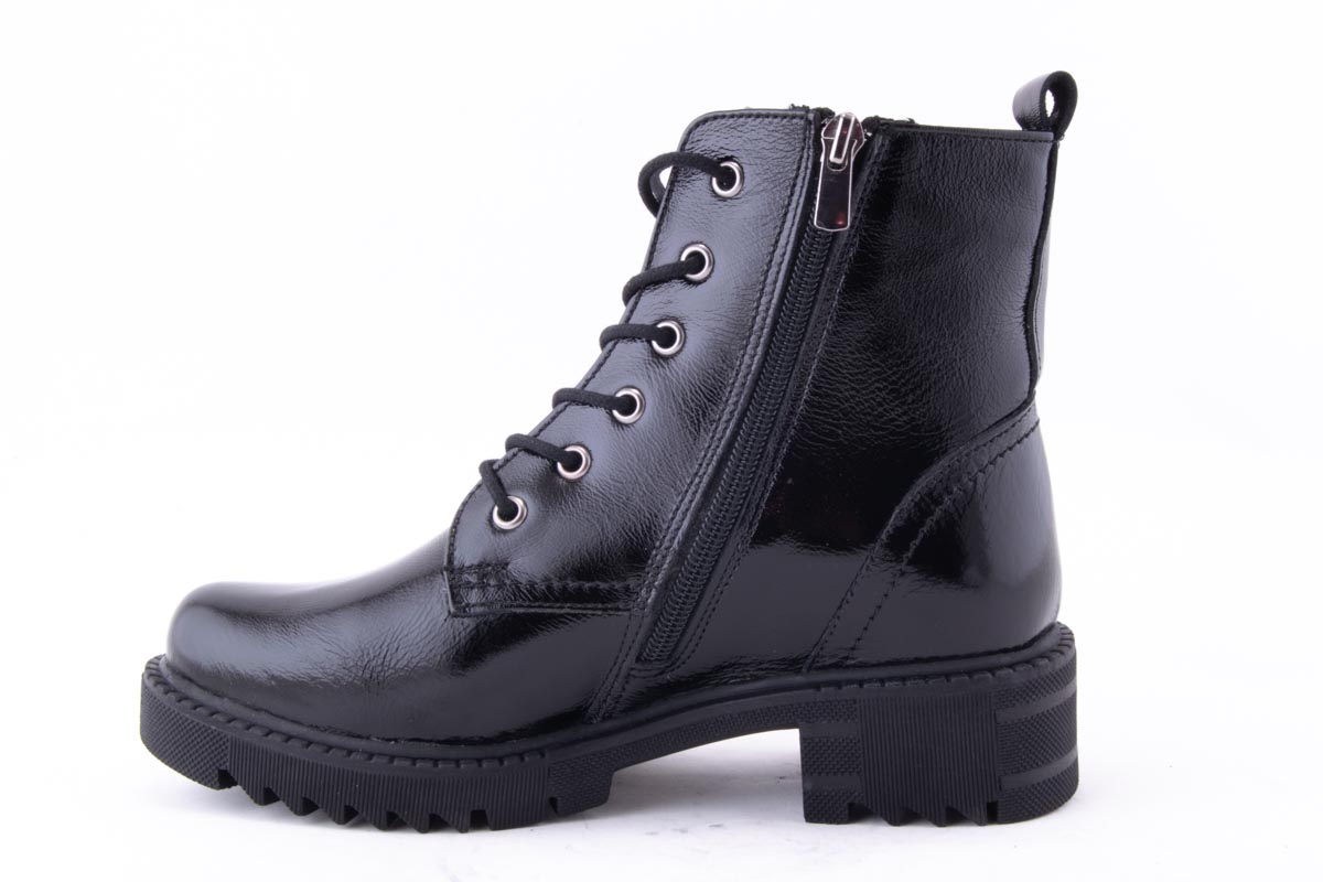 - material față: piele naturală lacuita, de înaltă calitate, cu siret si fermoar, cu design modern;