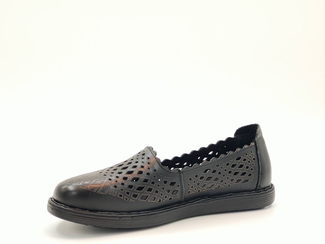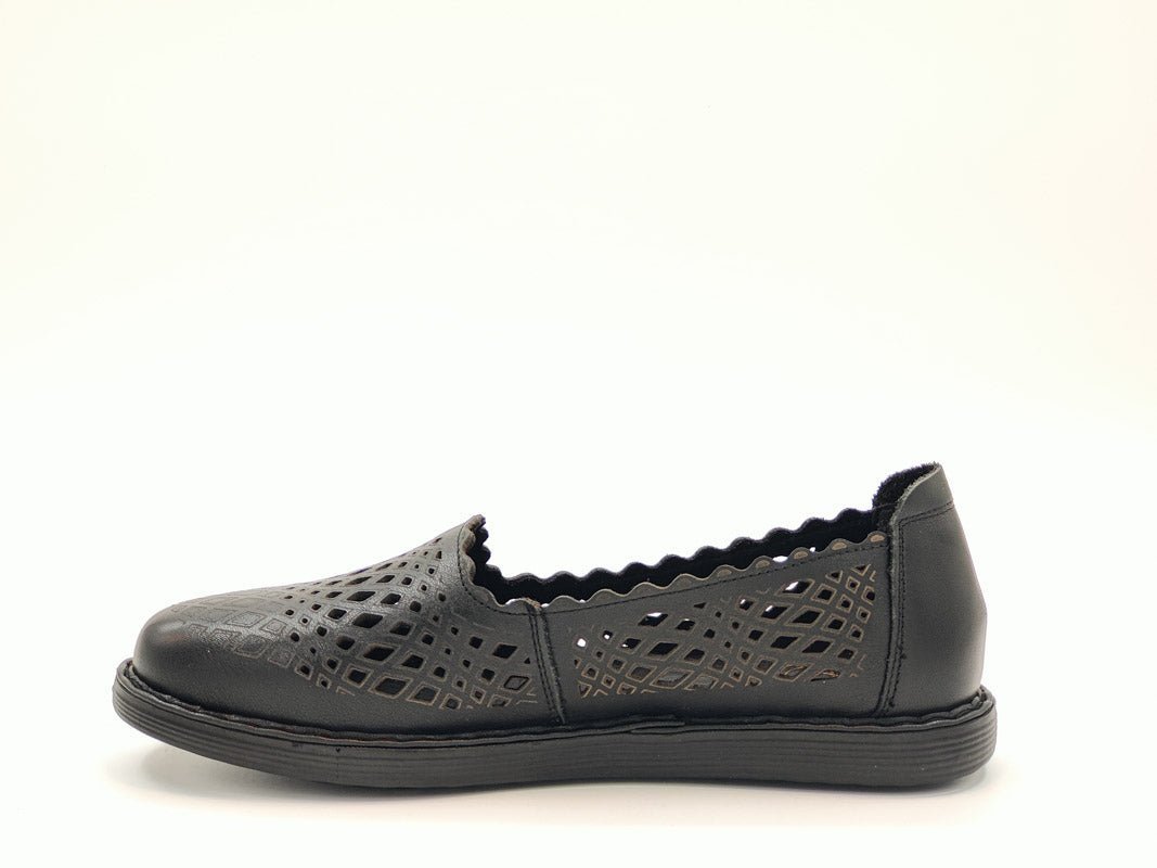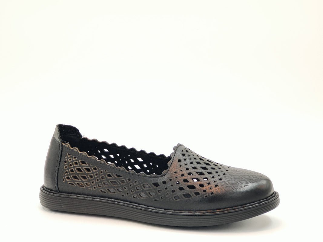 - Material Fata: piele naturala, de inalta calitate, cu model laserat, tipul varfului: rotund, cu model perforat.