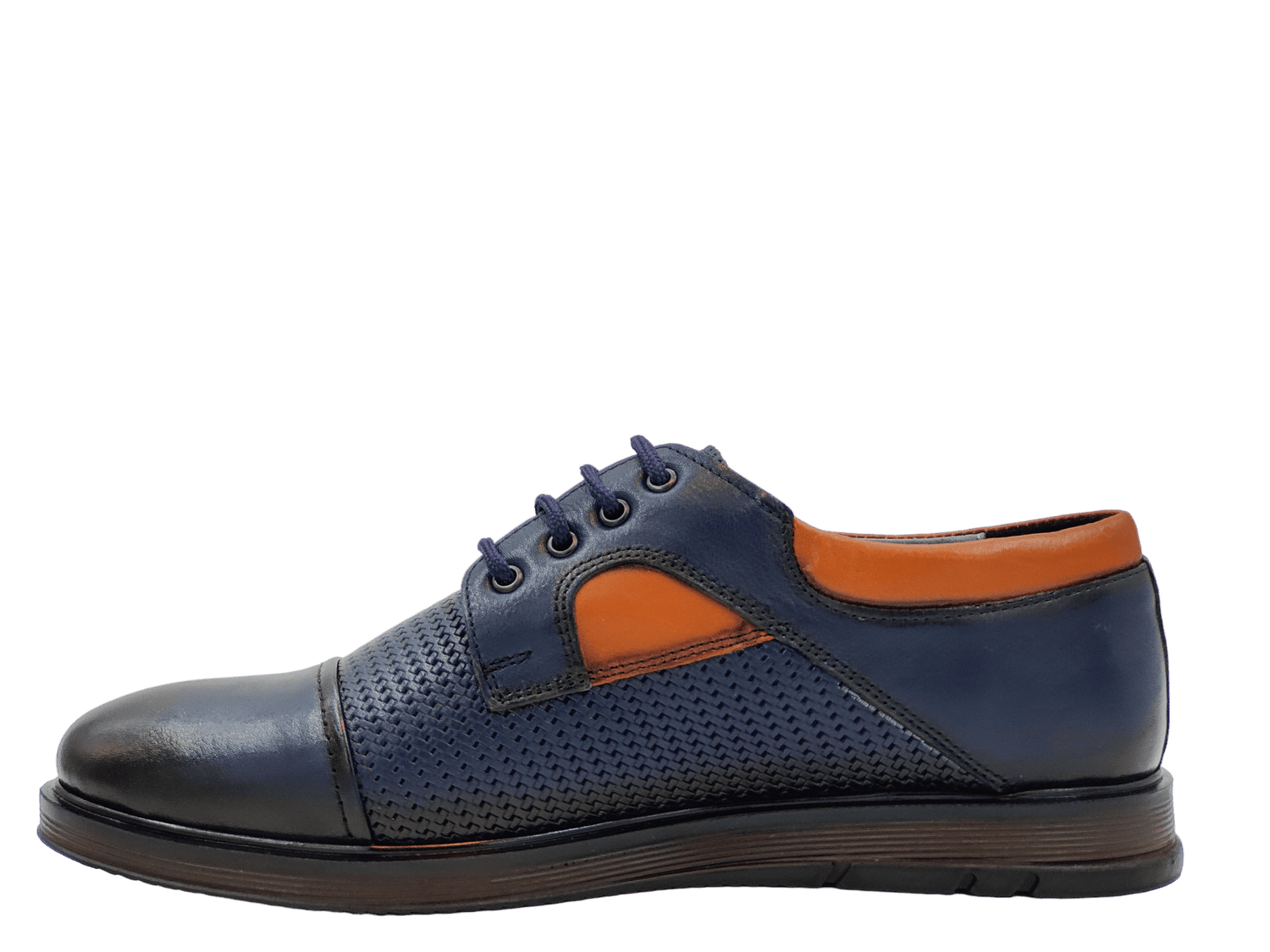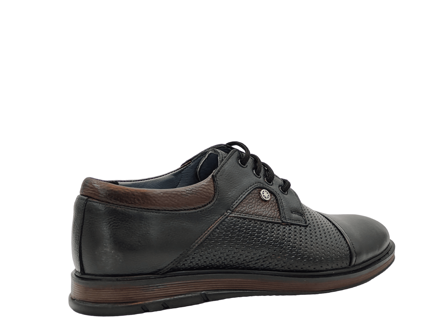 - material față: piele naturală de vițel, de înaltă calitate, cu model, cu design modern, de inalta calitate, cu model laserat, tipul varfului: rotund, tip inchidere: siret;