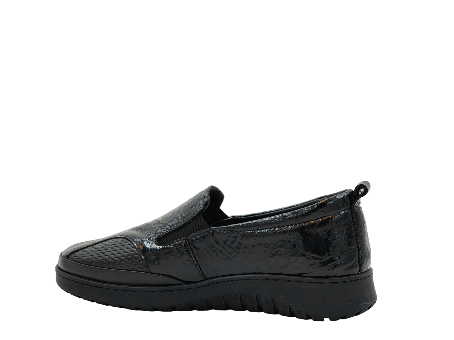 - Material Fata: piele naturala, piele naturala lacuita, de inalta calitate, tipul varfului: rotund, fixare optima pe picior datorita inchiderii cu 2 elastice, este prevazut in partea din fata pe interior cu un material special pentru picioare dificile, cu monturi;