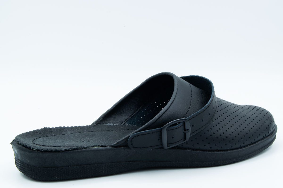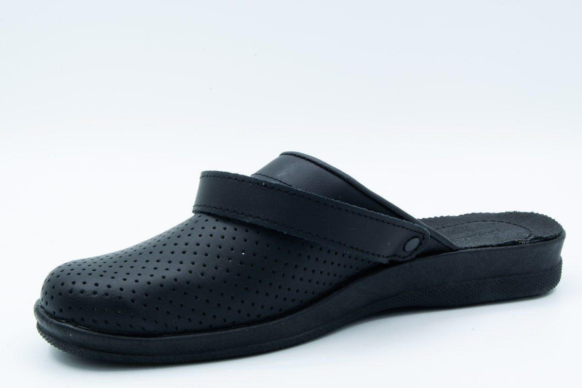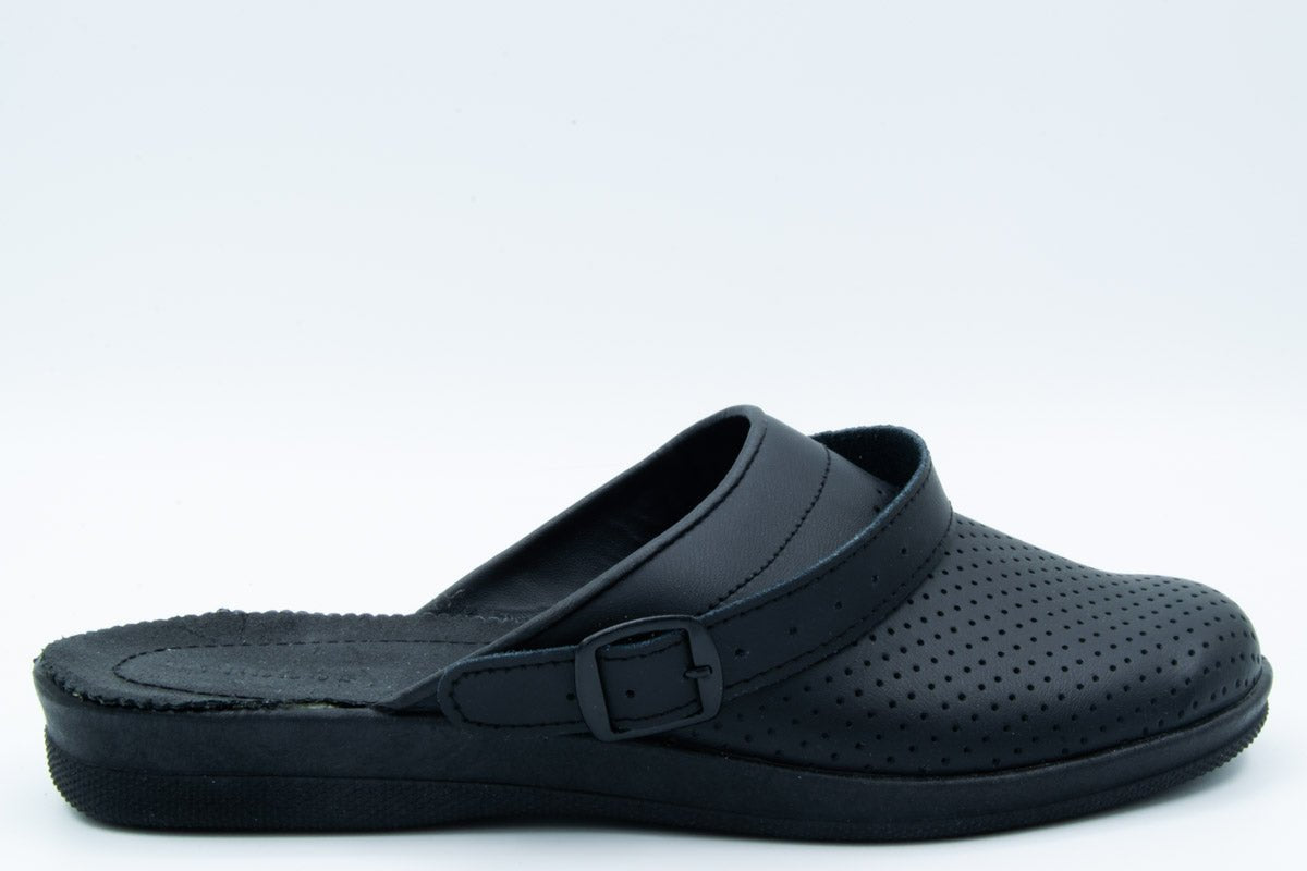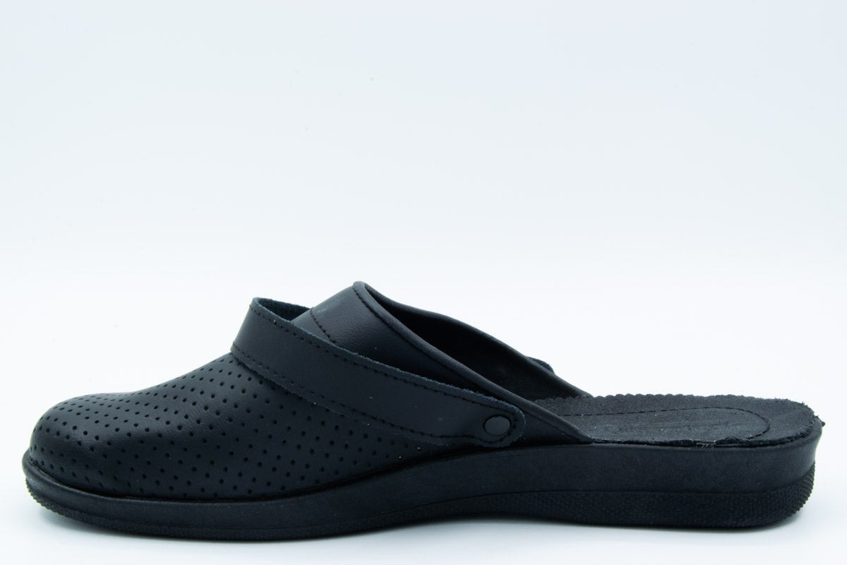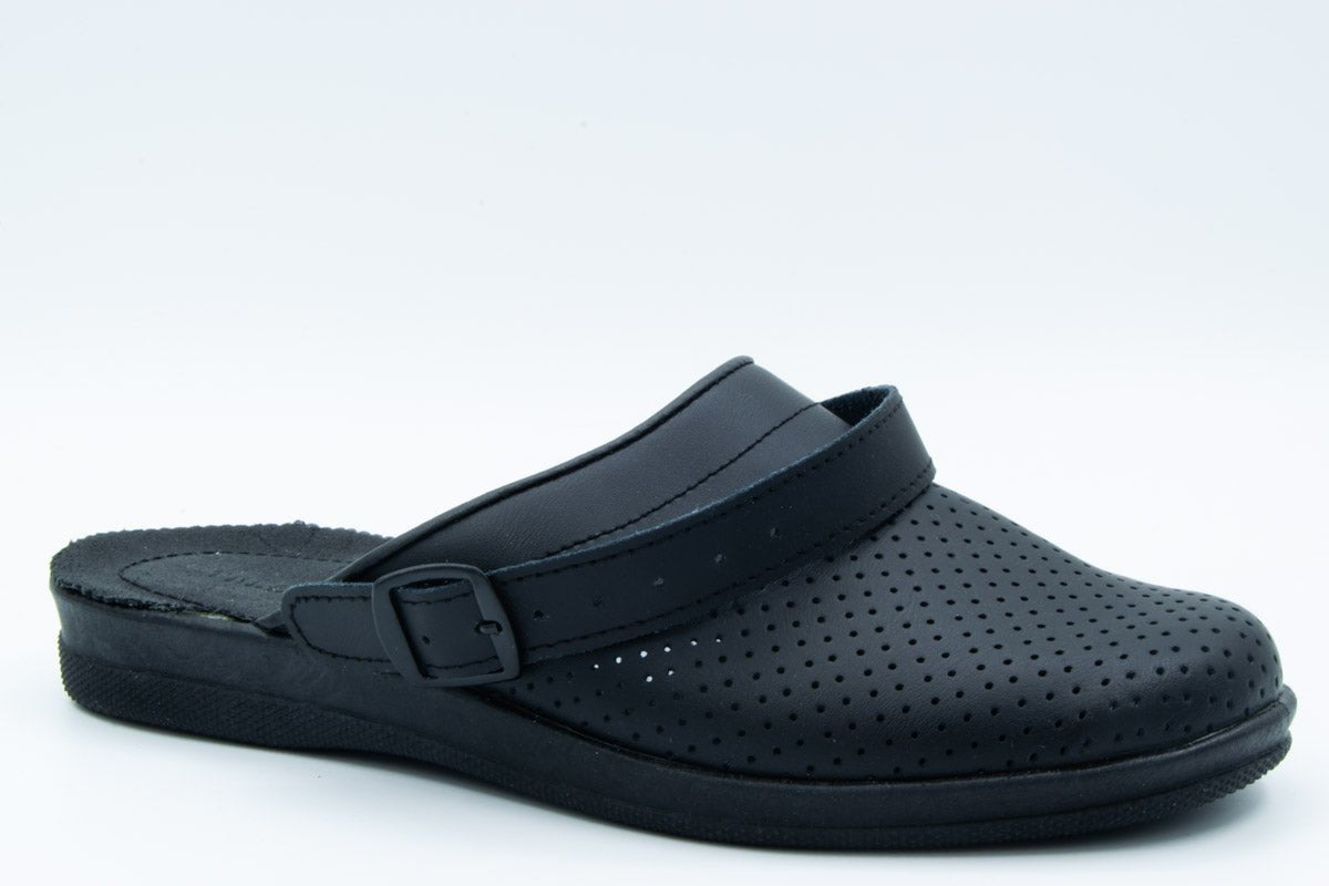 - Material Fata: piele naturala, de inalta calitate, tipul varfului: rotund, cu perforatii, cu bareta reglabila pentru a se putea purta atat gen sabot cat si gen sanda.